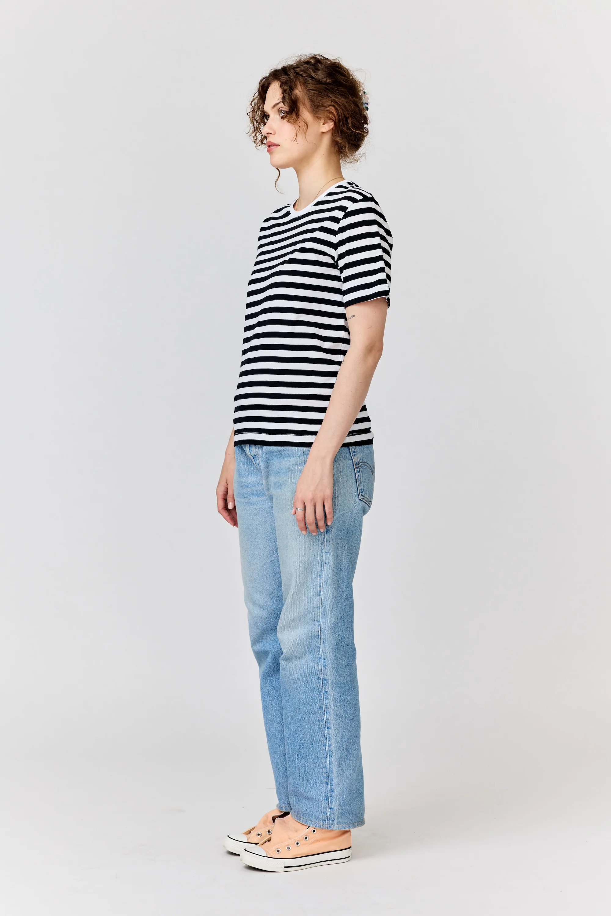 A relaxed lightweight t-shirt with the classic Verkstad stripes.