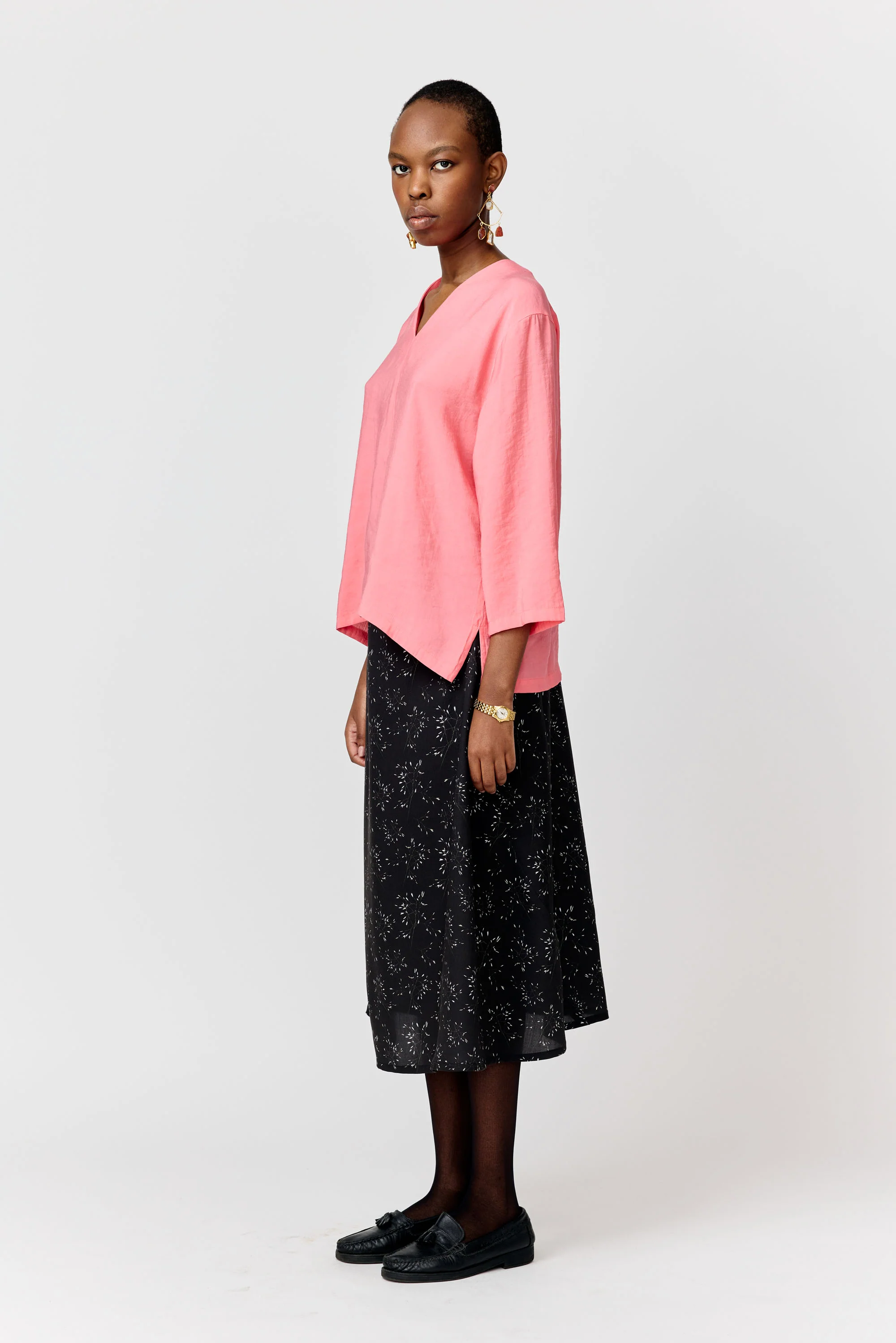 A hip-length blouse with a regular fit. ¾ sleeves and a V-neck opening.